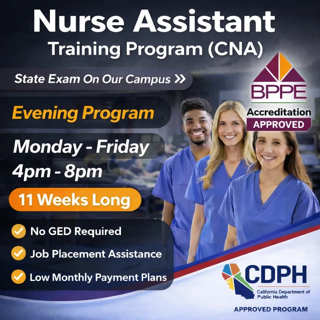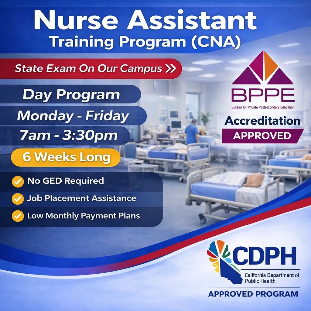 LGL College is an approved CNA (Certified Nurse Assistant) test site in Southern California and administers the CNA State Exam on campus upon program completion. Our Hybrid Nurse Assistant Program (online theory + in-person clinicals) prepares you to pass the California Nursing Assistant Competency Examination and work in hospitals, residential/long-term care, and home-care settings.